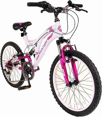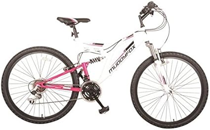 Ausgestattet mit einem super auffälligen rosa und weiß design wird die muddyfox radar shimano mit einem stahlrahmen und doppel suspension auf jedem terrain zu bekämpfen ausgestattet.